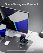 یکی از بزرگترین چالشهای کاربران اپل، نیاز به شارژرهای جداگانه برای هر دستگاه است. تصور کنید که میخواهید بخوابید و باید سه پریز مختلف را برای گوشی، ساعت و هندزفری خود اشغال کنید. شارژر انکر 737 MagGo با طراحی هوشمندانه “همه در یک” (All-in-One)، این مشکل را به کلی ریشه کن کرده است. این دستگاه دارای سه ماژول شارژ مجزا است که در یک بدنه فشرده و هندسی جای گرفتهاند.