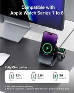 اپل واچ: سازگار با تمامی مدلهای Apple Watch (Series 1-9, Ultra, SE). نکته: قابلیت فست شارژ فقط برای مدلهای سری ۷ به بعد فعال است.