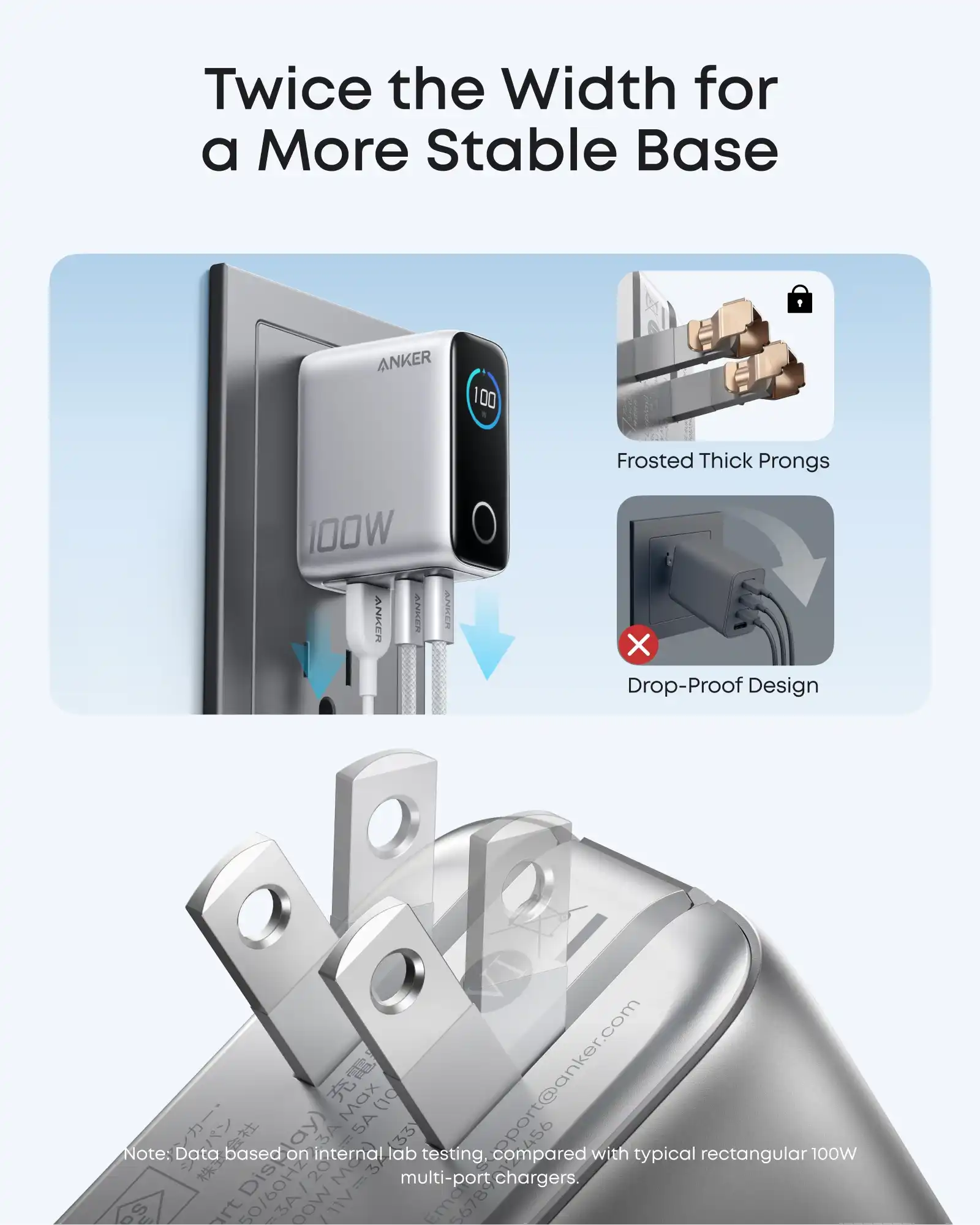 توان خروجی 100 وات این شارژر، نقطه قوت اصلی آن است. این قدرت به شما امکان میدهد تا حتی پرمصرفترین دستگاهها مانند لپتاپهای قدرتمند (از جمله مکبوک پرو 16 اینچ) را در کمترین زمان ممکن شارژ کنید. تصور کنید که میتوانید لپتاپ خود را در مدتزمان کوتاهی بهطور کامل شارژ کرده و به کارهای مهم خود برسید، بدون اینکه نگران اتمام شارژ باشید. این سطح از شارژ سریع تنها به لپتاپها محدود نمیشود؛ تبلتها، کنسولهای بازی قابل حمل و حتی گوشیهای هوشمند نیز با سرعتی باورنکردنی شارژ خواهند شد. شارژر انکر B121B با پشتیبانی از پروتکلهای مختلف شارژ سریع، سازگاری گستردهای با انواع دستگاهها دارد و میتواند نیازهای شارژ تمامی وسایل الکترونیکی شما را بهخوبی پاسخگو باشد.