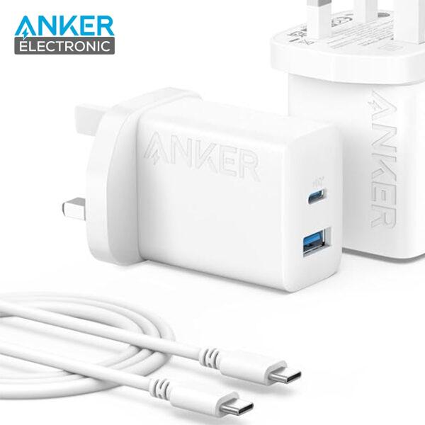 شارژر دیواری 20 وات انکر Anker 20W Dual Port Charger With USB-C Cable B2348K11 سه پین